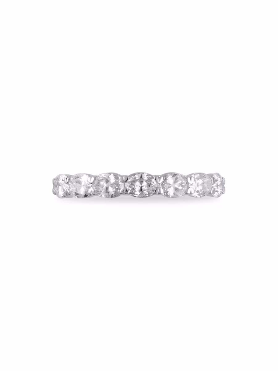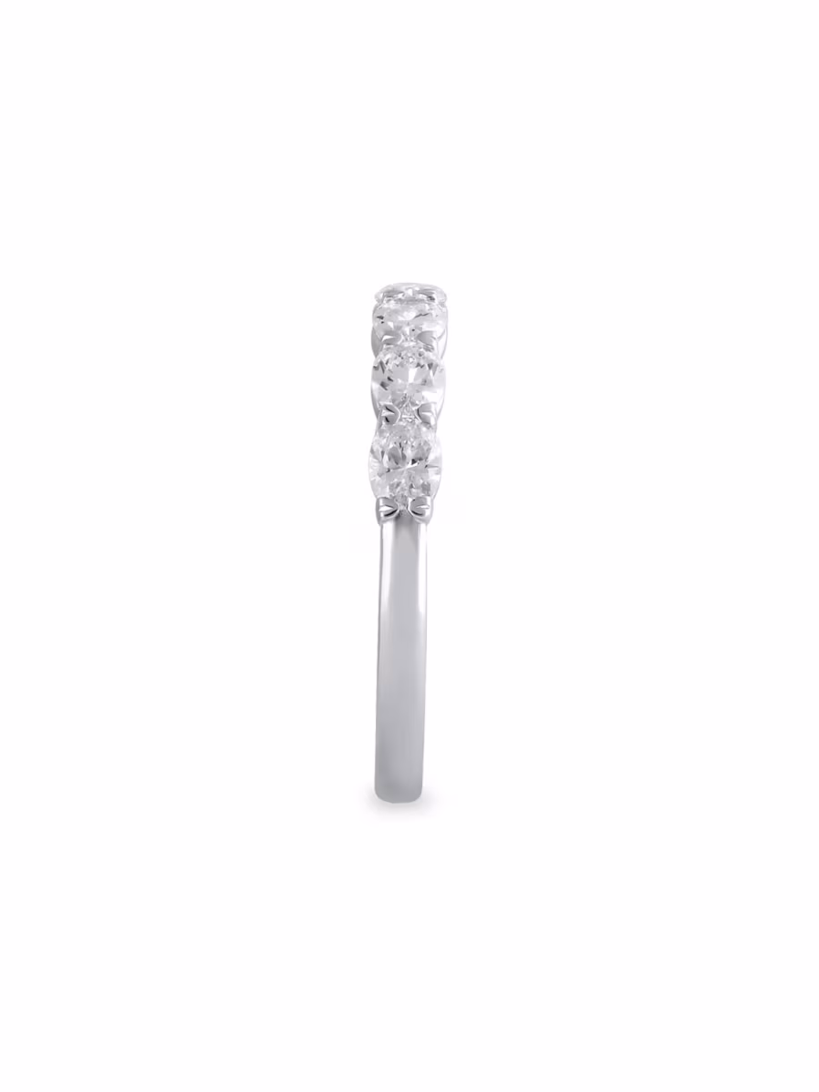 Classic anniversary ring in a demi-band design of white gold simply glistens with seven round-cut, lab-grown diamonds. Worn on its own, as an upgrade to your wedding band or as an addition to your stack, this ring is sure to shine.