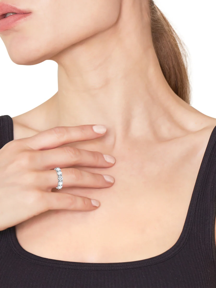 Show off the sparkle. Lavish ring in a demi-band design of white gold simply glistens with five round-cut, lab-grown diamonds.