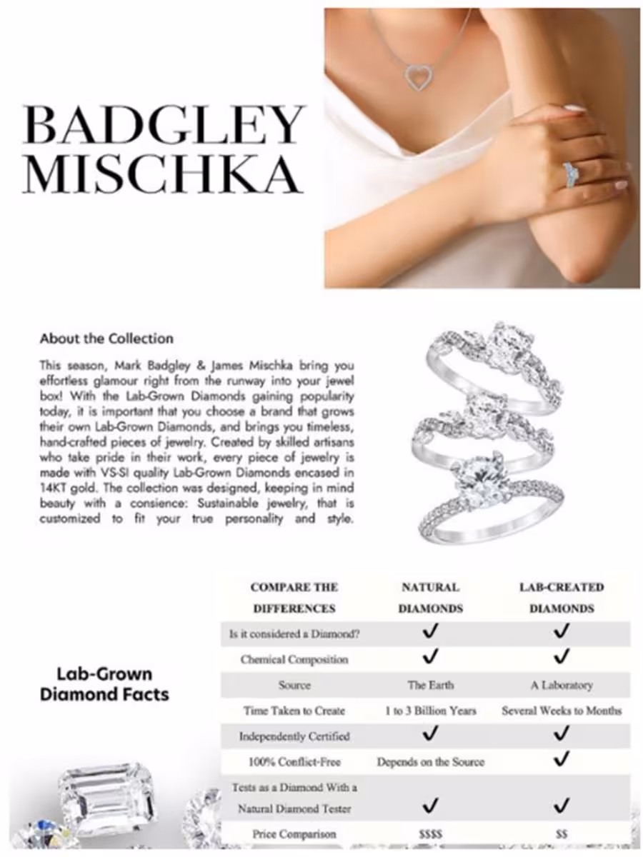 Badgley Mischka lab-grown diamonds are created by skilled artisans who take pride in their work. Every piece of jewellery is made with quality lab-grown diamonds. The collection was designed by keeping in mind beauty with a conscience: Sustainable jewellery that is customized to fit your personality and style.