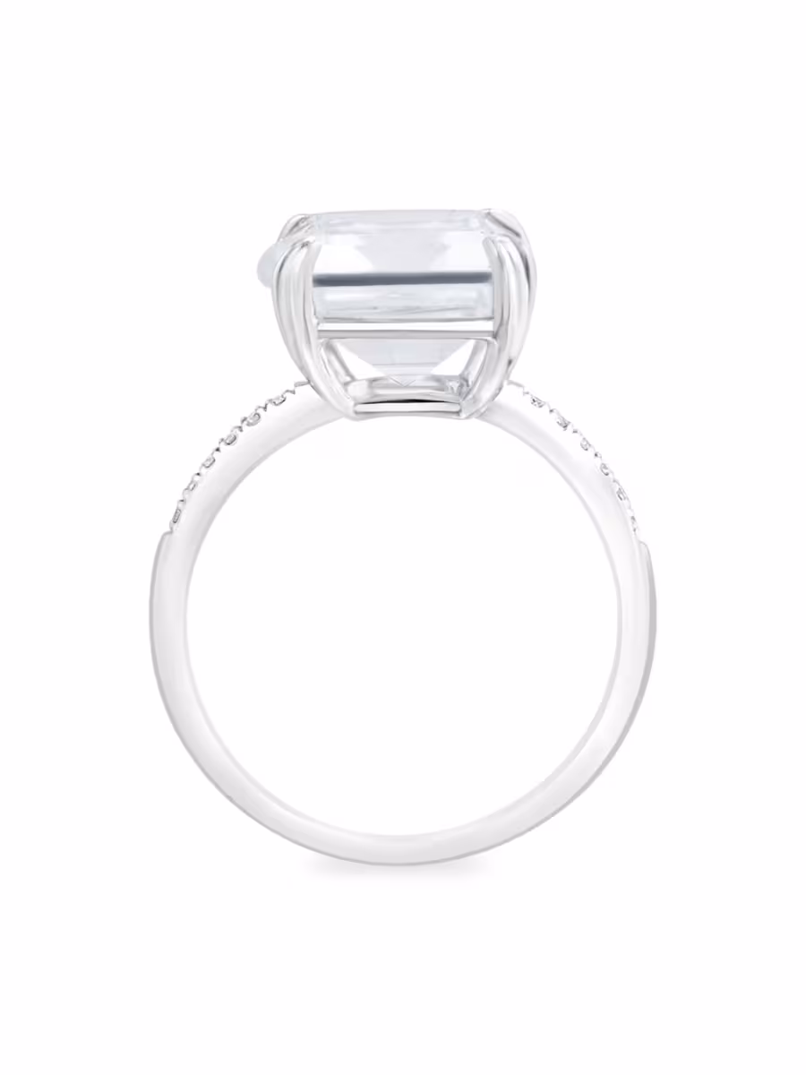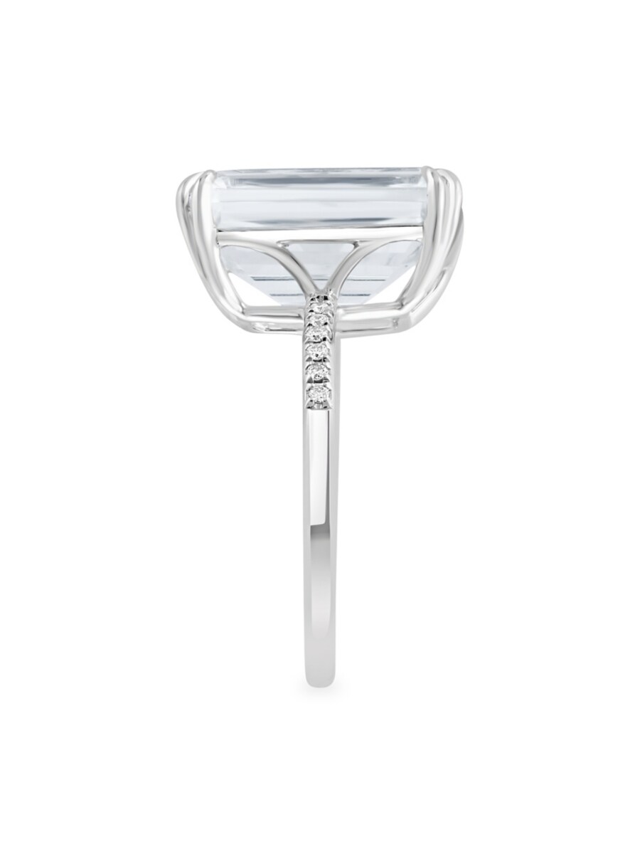 A centrepiece white topaz stone is flanked by diamond shoulders on this statement ring.