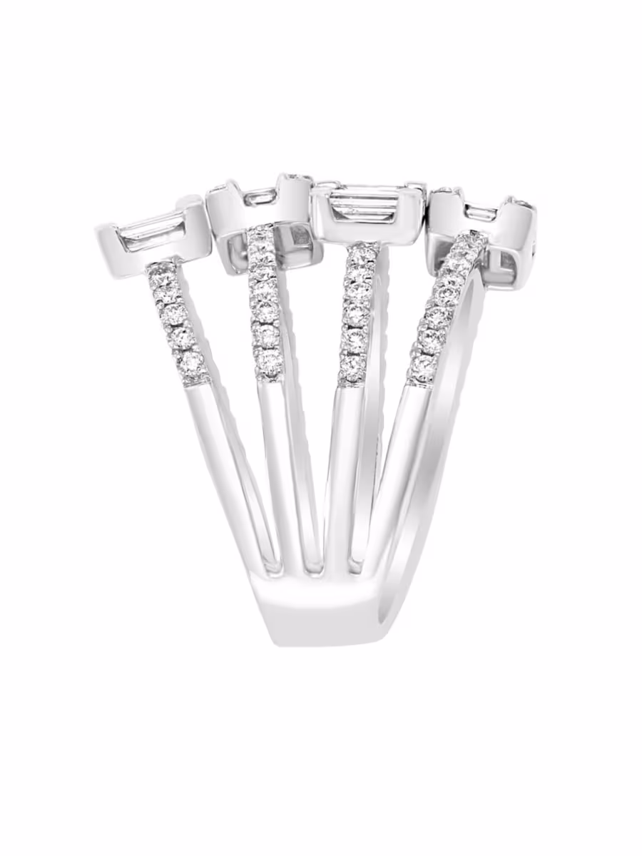 The ultimate statement piece. EFFY's outstanding cocktail ring showcases 1.7 ct. t.w. round and baguette-cut diamonds in a four-tier design of 14K white gold.