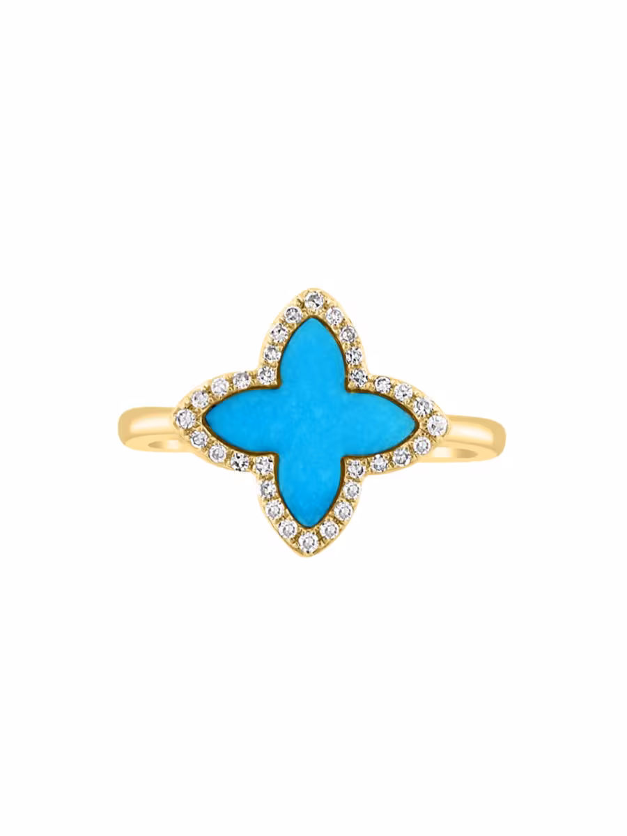 • Effy 14K Yellow Gold, 0.11 CT. T.W. Diamond & Turquoise Cross Ring