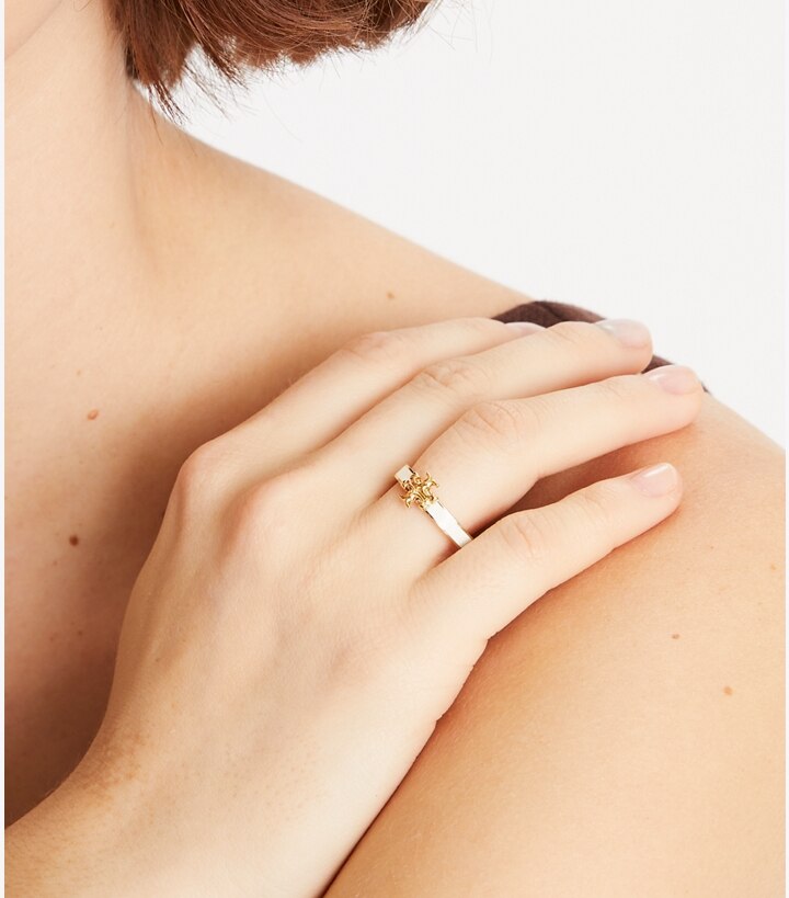 The Kira ring pairs smooth enamel with our signature Double T. It is a subtle statement on its own or worn with the Kira Enamel Bracelet.