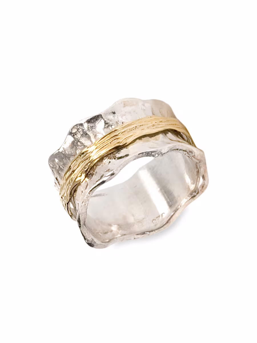 From the Zen Collection. Take a moment every day to reflect on your own well being and nurture yourself. 925 sterling silver band ring with 9K yellow gold accent.