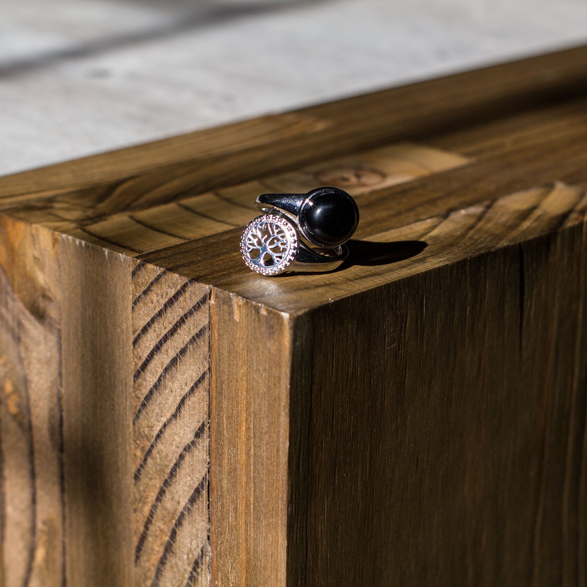 Are you drawn to the calming and grounding influence of crystals, and the liberating lifestyle they symbolize? If so, immerse yourself in the sheer beauty of our exclusive assortment of crystal rings. These exquisite wrap-around adjustable rings are a sight to behold, featuring a dazzling tree of life intricately set in a mesmerizing circular pattern, accentuated by a captivating and flawlessly cut round cabochon crystal at its center. Each ring is a fusion of elegance and spirituality, designed to resonate with your inner wanderer and free spirit.