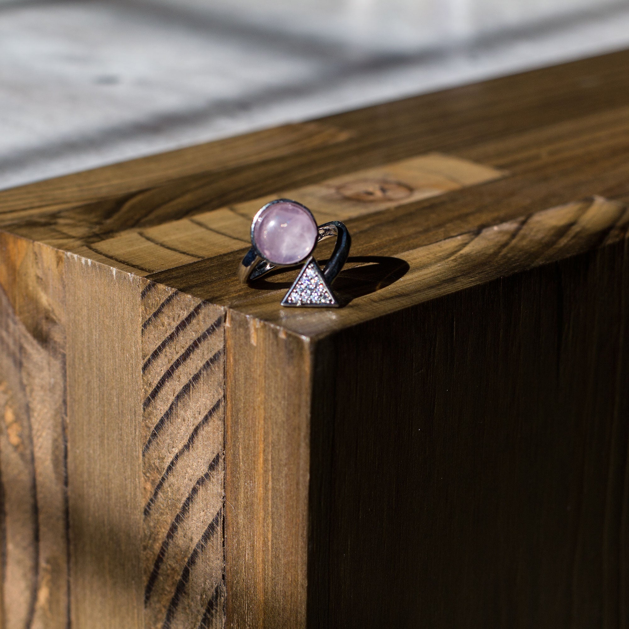 Are you drawn to the calming and grounding influence of crystals, and the liberating lifestyle they symbolize? If so, immerse yourself in the sheer beauty of our exclusive assortment of crystal rings. These exquisite wrap-around adjustable rings are a sight to behold, featuring dazzling rhinestones intricately arranged in a mesmerizing triangular pattern, accentuated by a captivating and flawlessly cut round cabochon crystal at its center. Each ring is a fusion of elegance and spirituality, designed to resonate with your inner wanderer and free spirit.