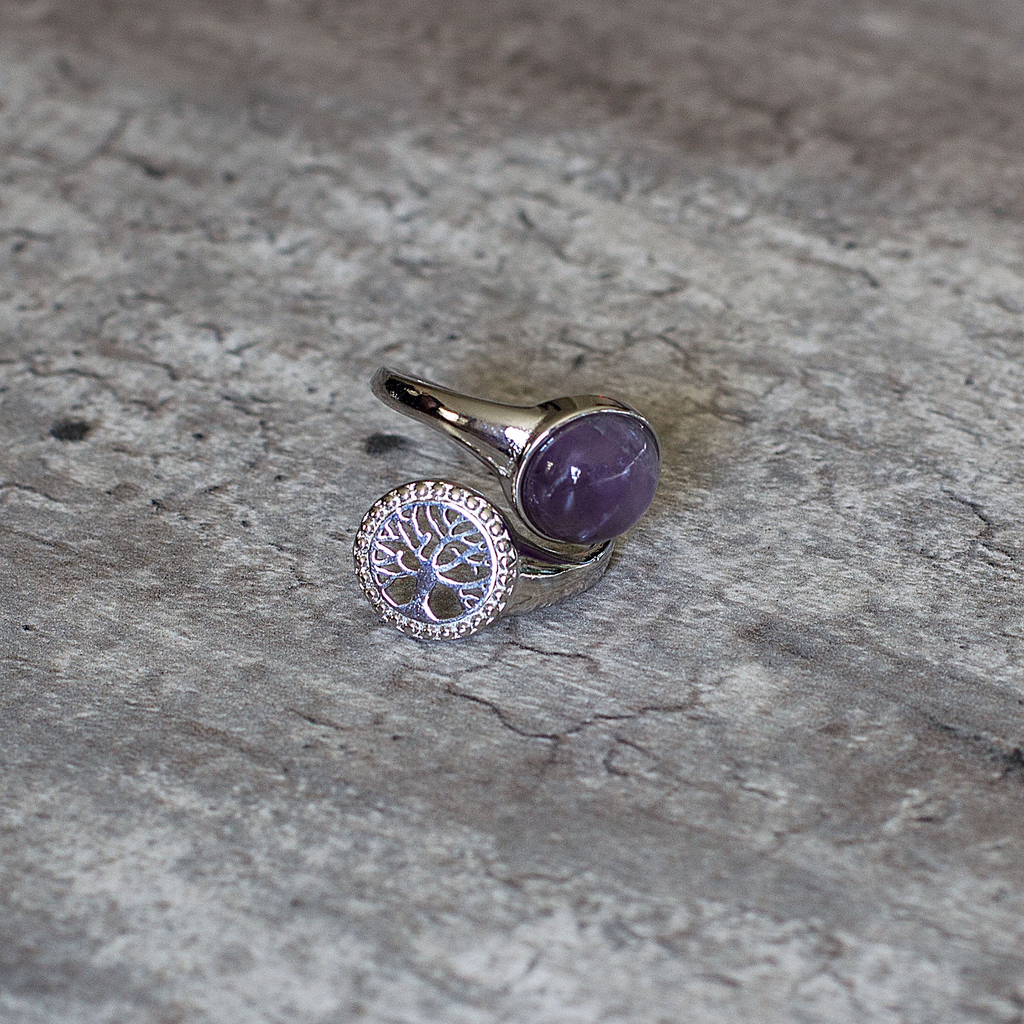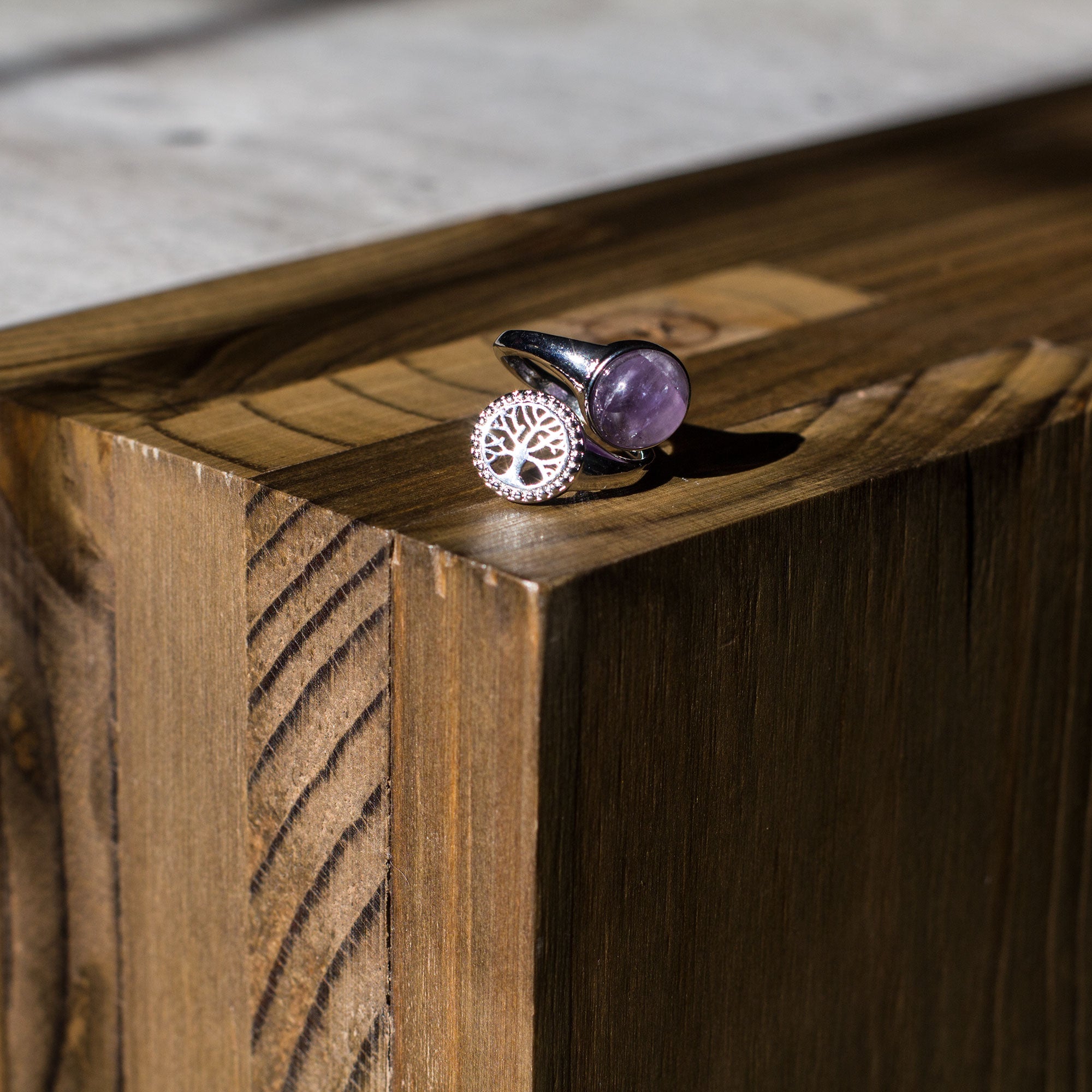 Are you drawn to the calming and grounding influence of crystals, and the liberating lifestyle they symbolize? If so, immerse yourself in the sheer beauty of our exclusive assortment of crystal rings. These exquisite wrap-around adjustable rings are a sight to behold, featuring a dazzling tree of life intricately set in a mesmerizing circular pattern, accentuated by a captivating and flawlessly cut round cabochon crystal at its center. Each ring is a fusion of elegance and spirituality, designed to resonate with your inner wanderer and free spirit.