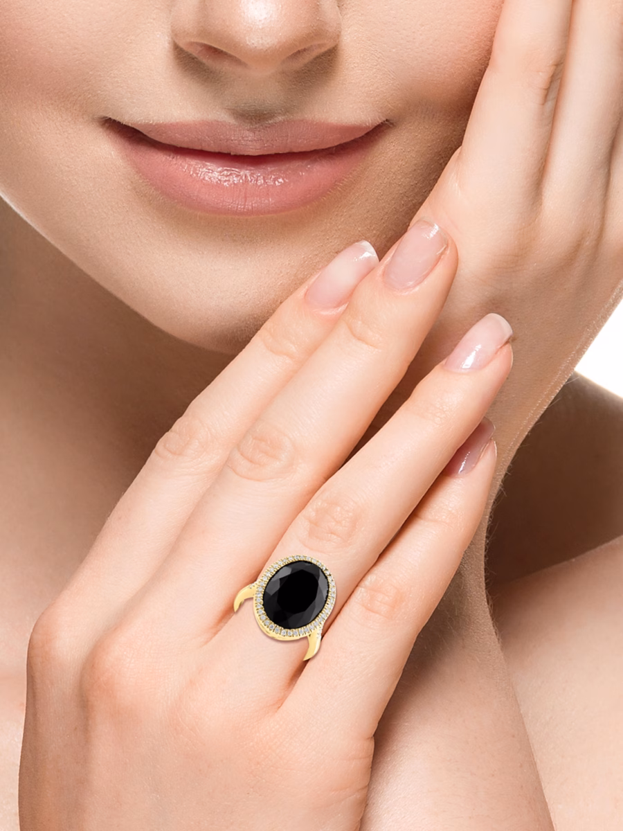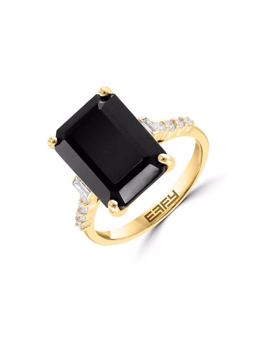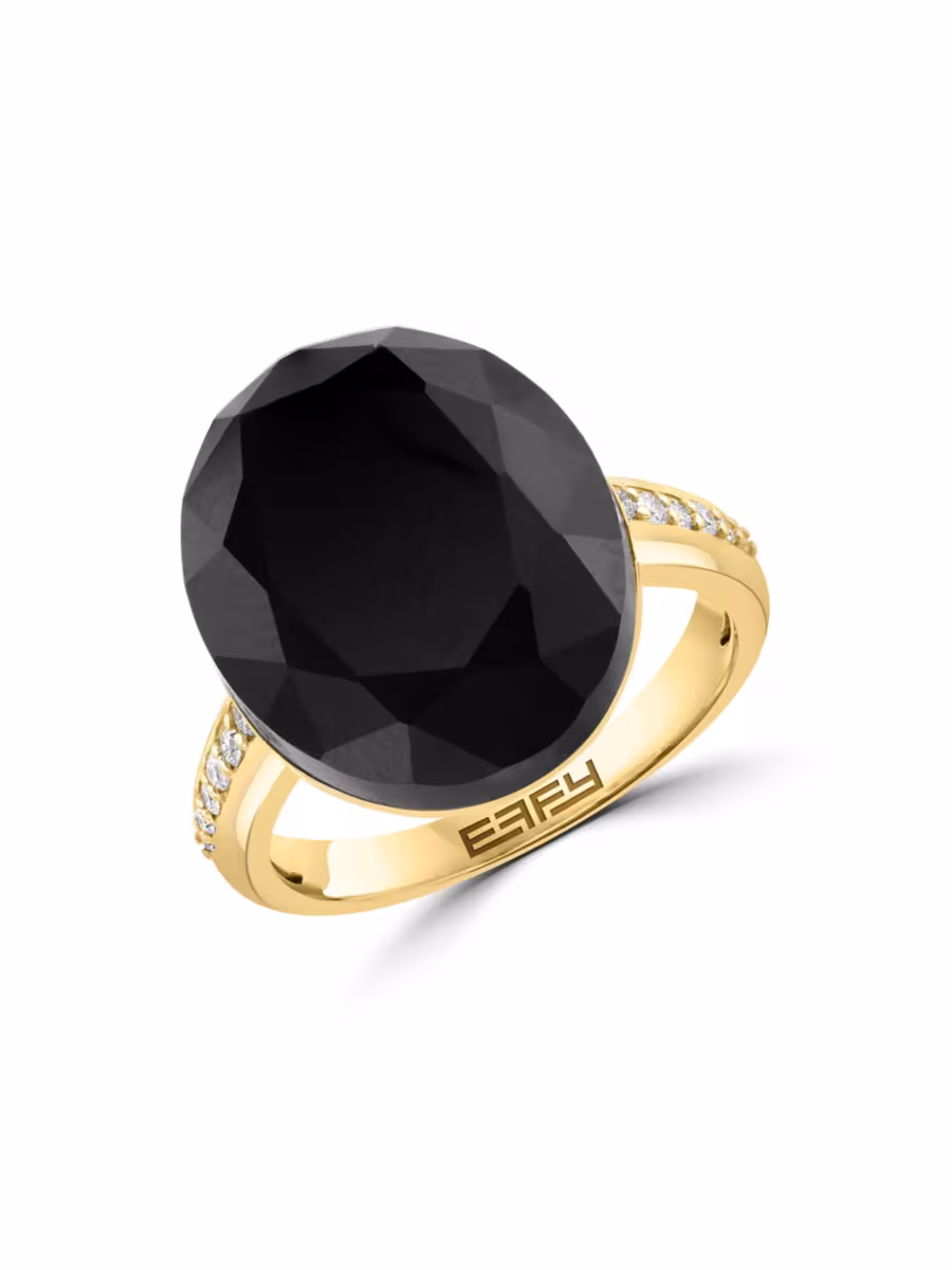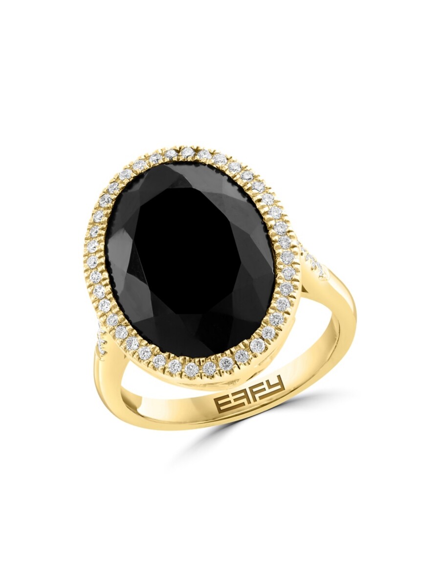 Effy 14K Yellow Gold, 0.12 CT. T.W. Diamond & Onyx Statement Ring