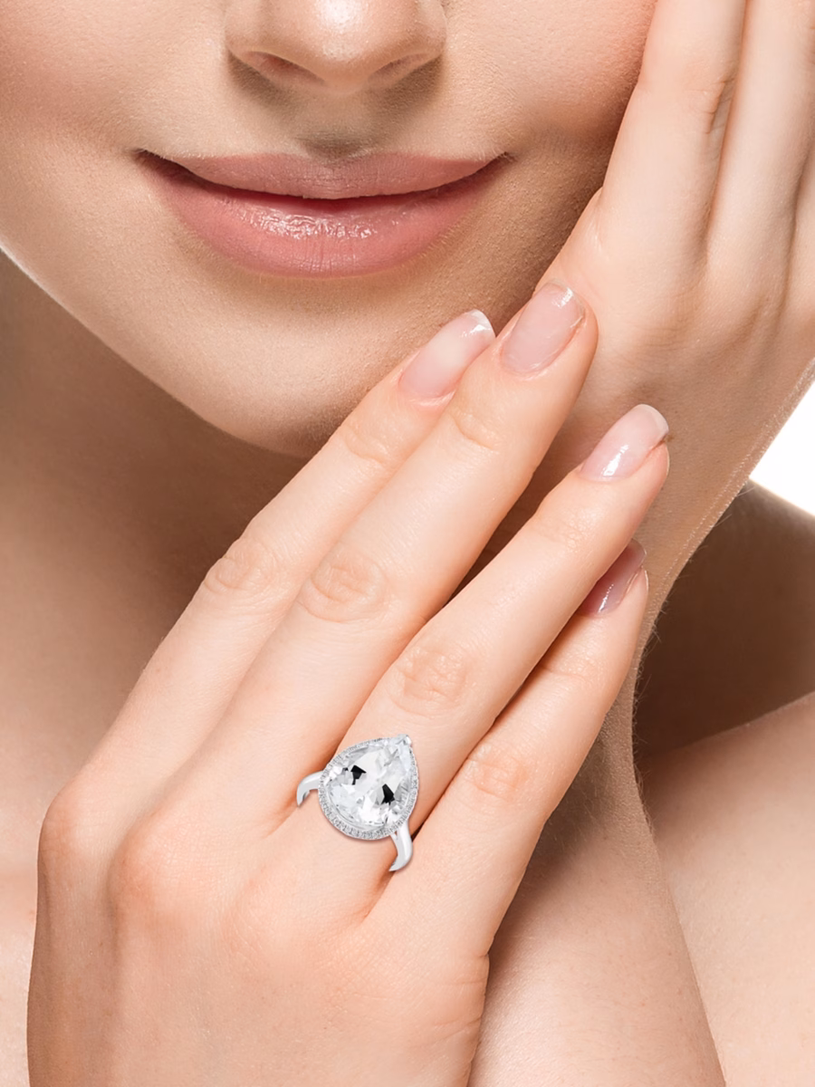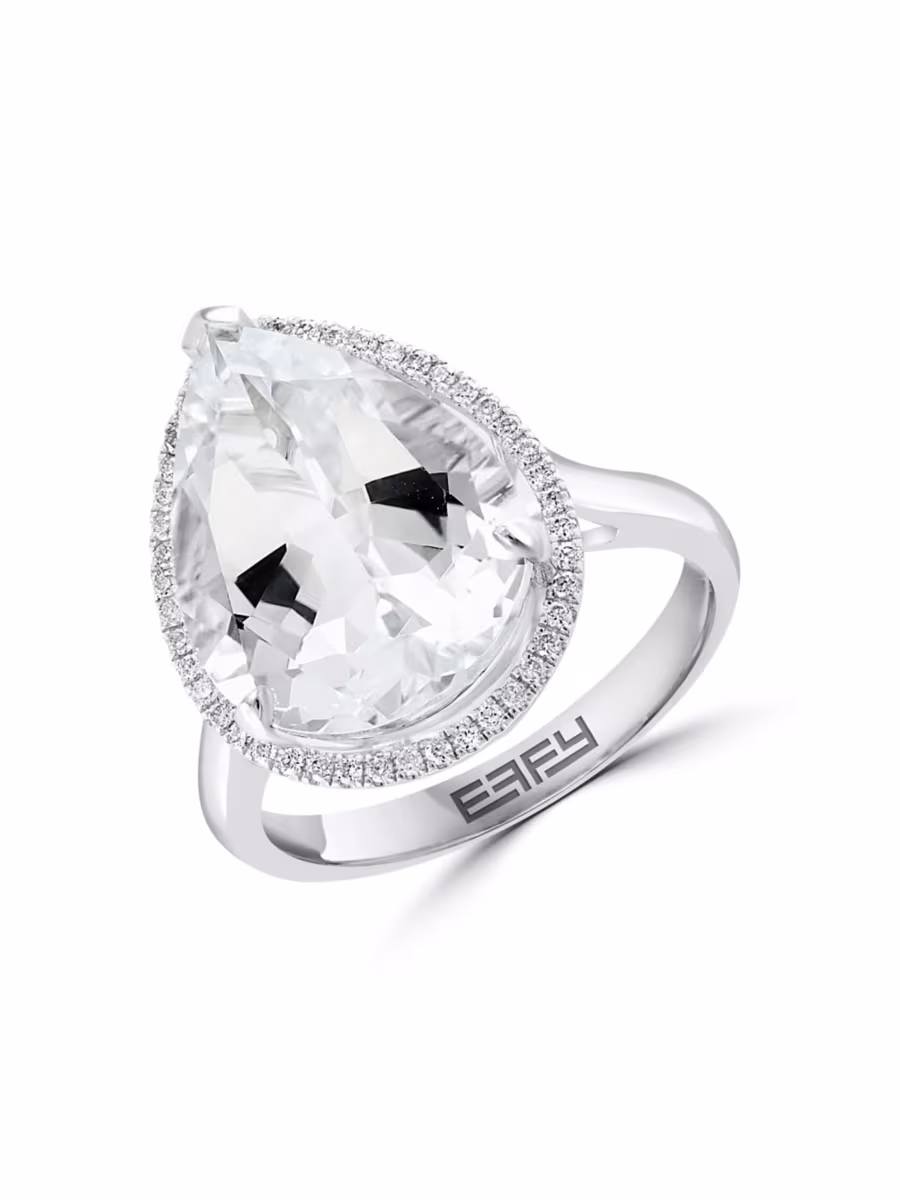 Effy 14K White Gold, White Topaz & 0.17 CT. T.W. Diamond Ring
