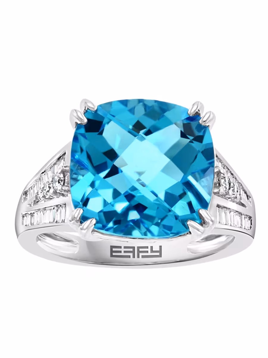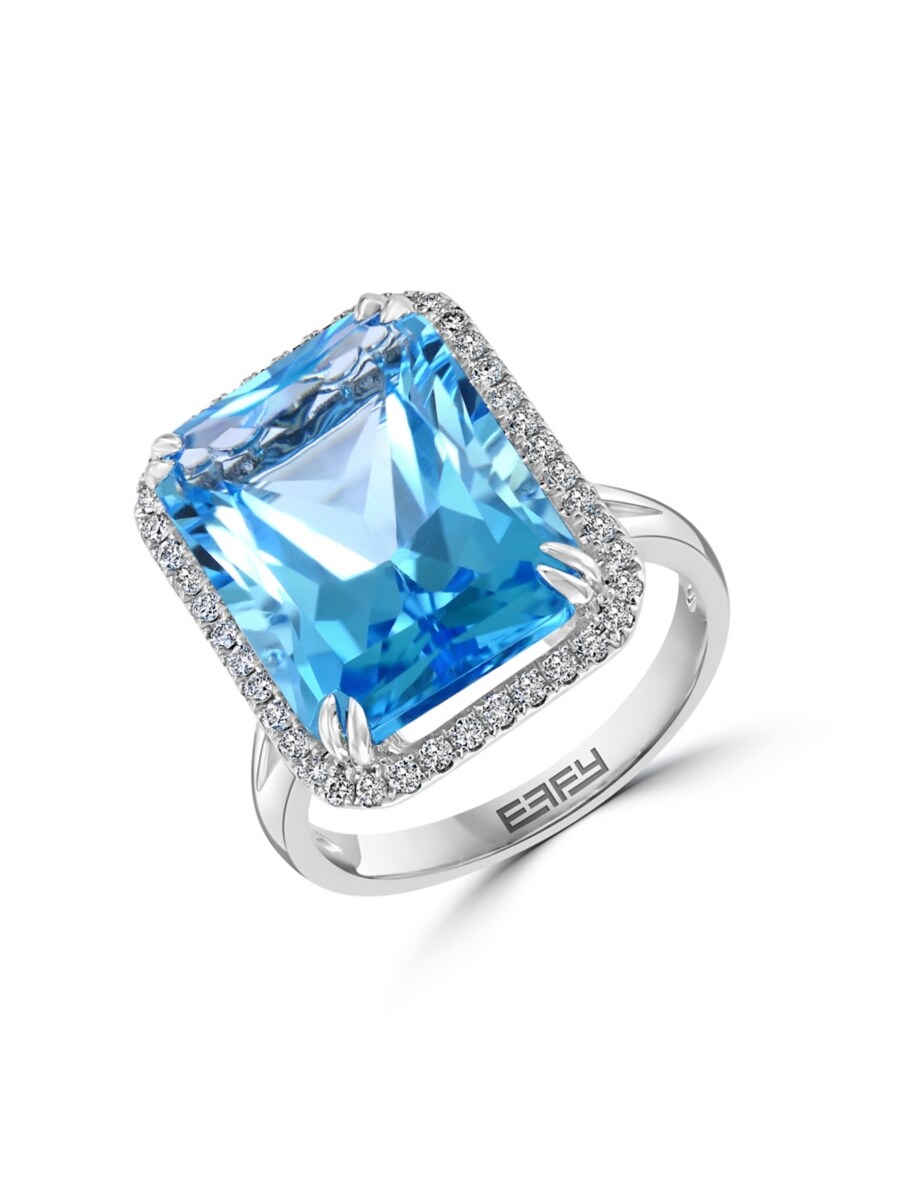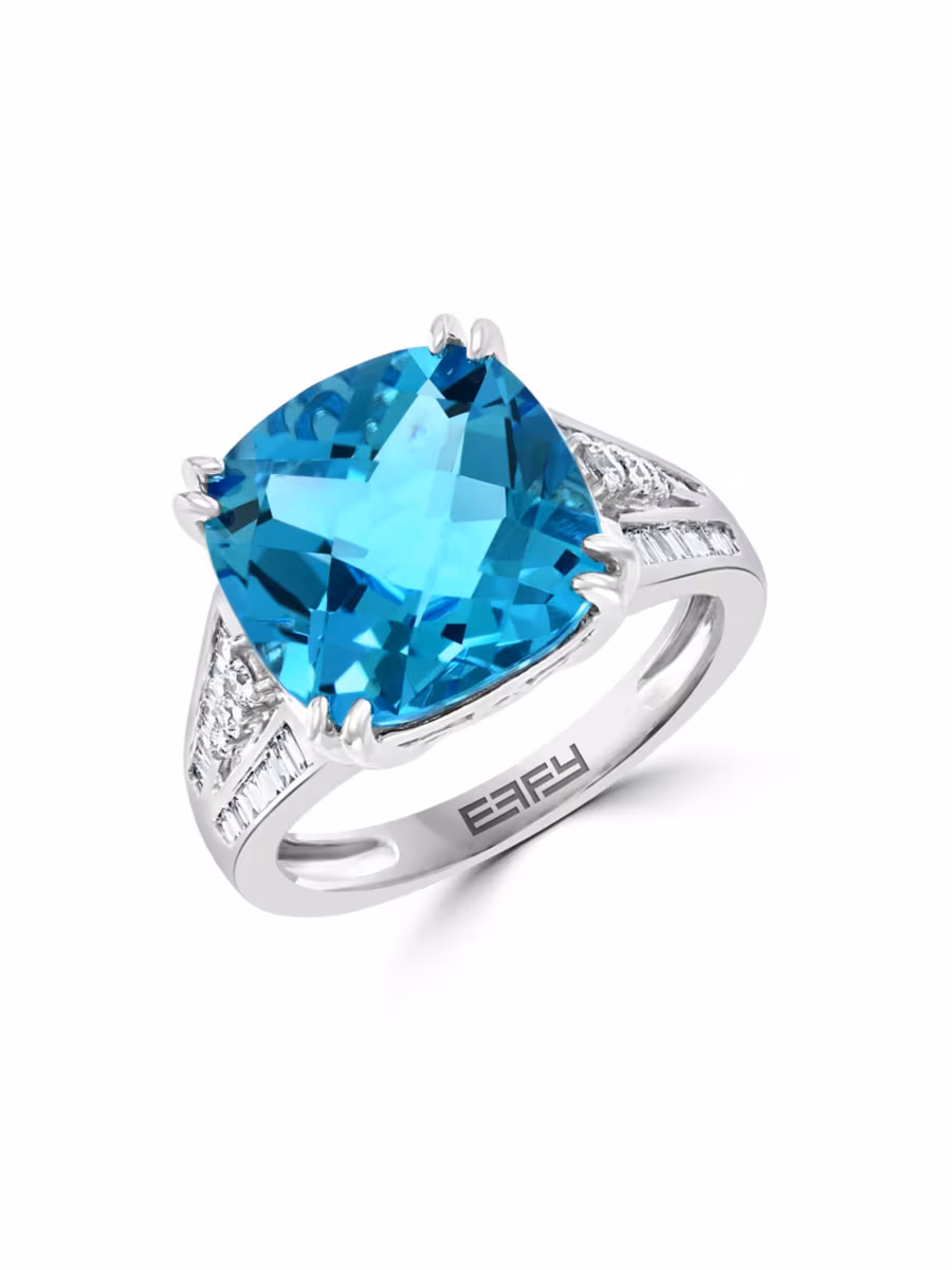 Effy 14K White Gold, Blue Topaz & 0.28 CT. T.W. Diamond Ring