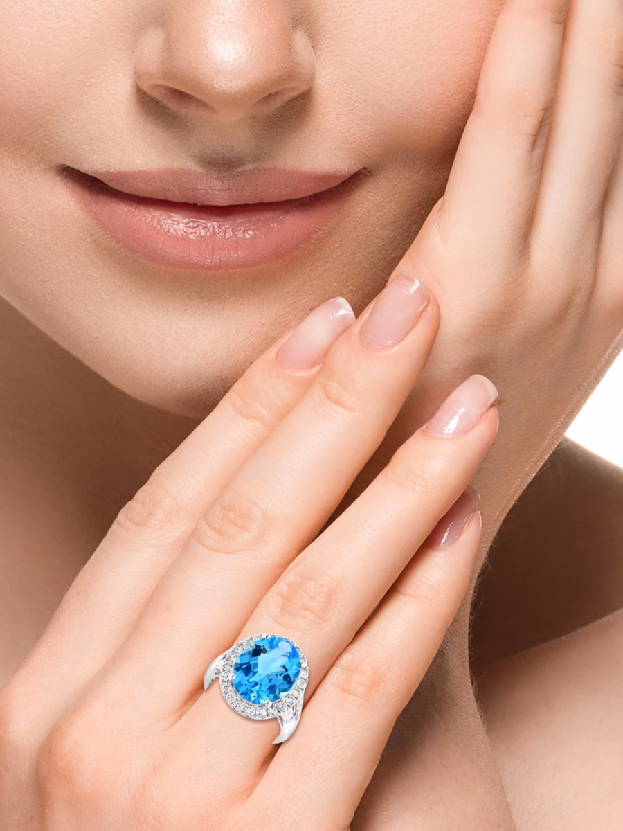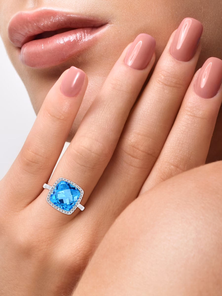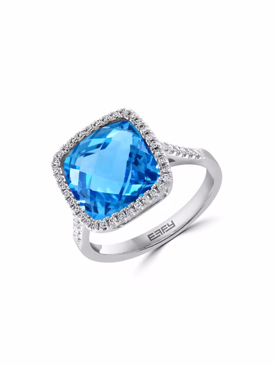 Effy 14K White Gold, Blue Topaz & 0.28 CT. T.W. Diamond Ring