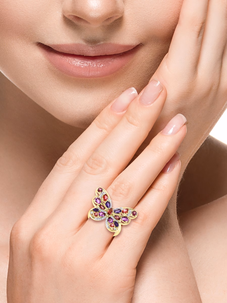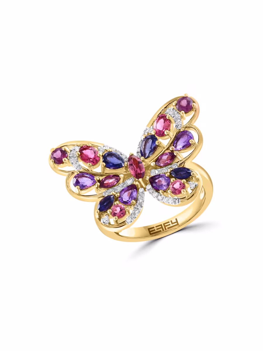 Effy 14K Yellow Gold, 0.15 CT. T.W. & Multi-Stone Butterfly Ring