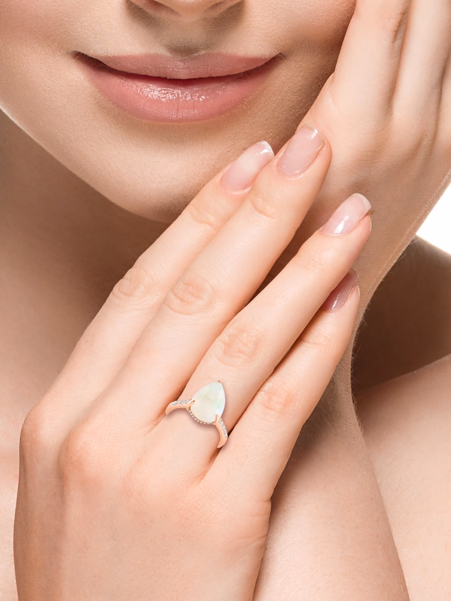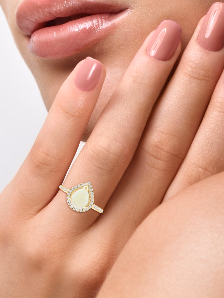 Effy 14K Yellow Gold, 0.29 CT. T.W. Diamond & Opal Teardrop Ring