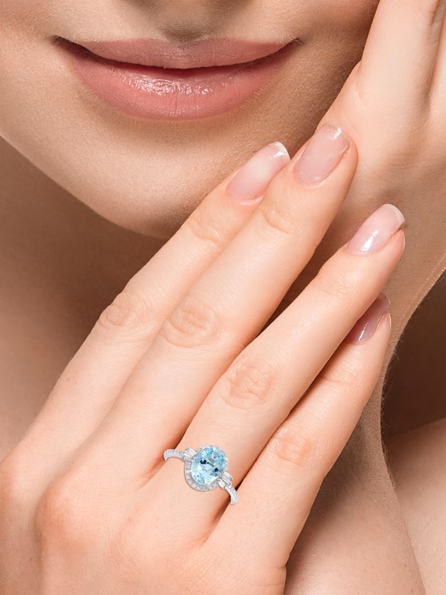 Effy Sterling Silver, Aquamarine & 0.3 CT. T.W. Diamond Halo Ring
