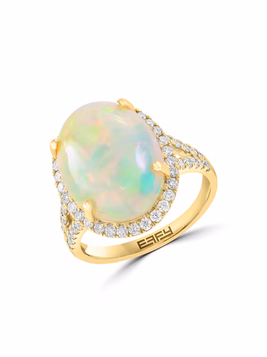 Effy 14K Yellow Gold, Ethiopian Opal & 0.68 CT. T.W. Diamond Halo Ring