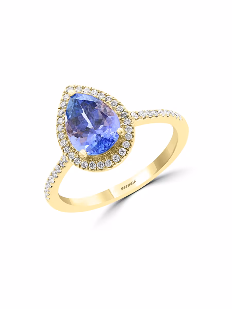 Effy 14K Yellow Gold, Tanzanite & 0.25 CT. T.W. Diamond Pear-Cut Halo Ring