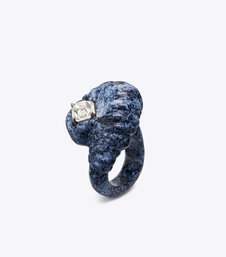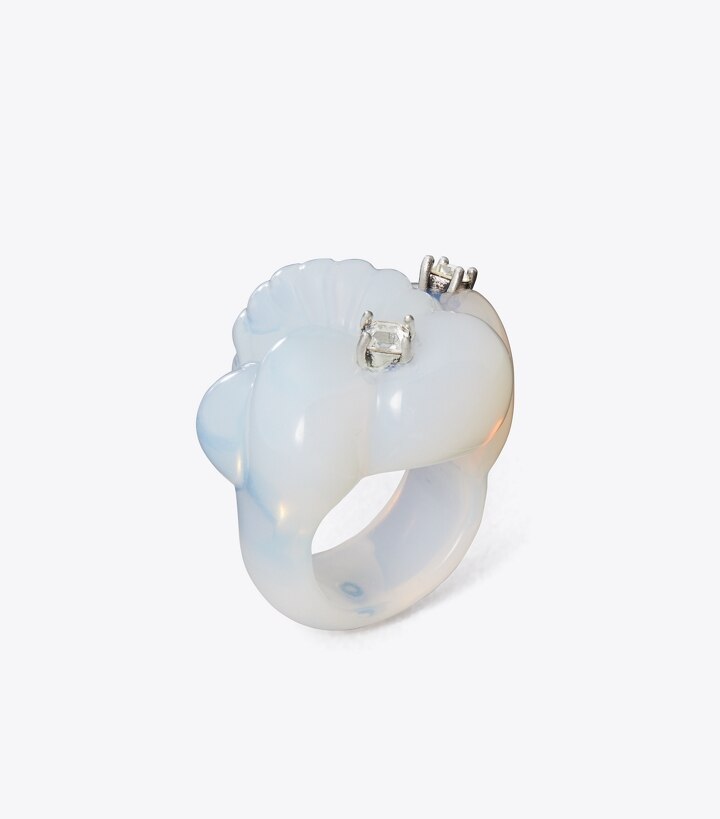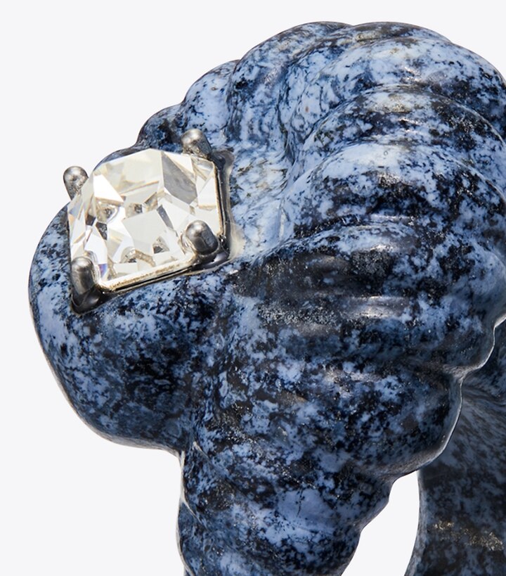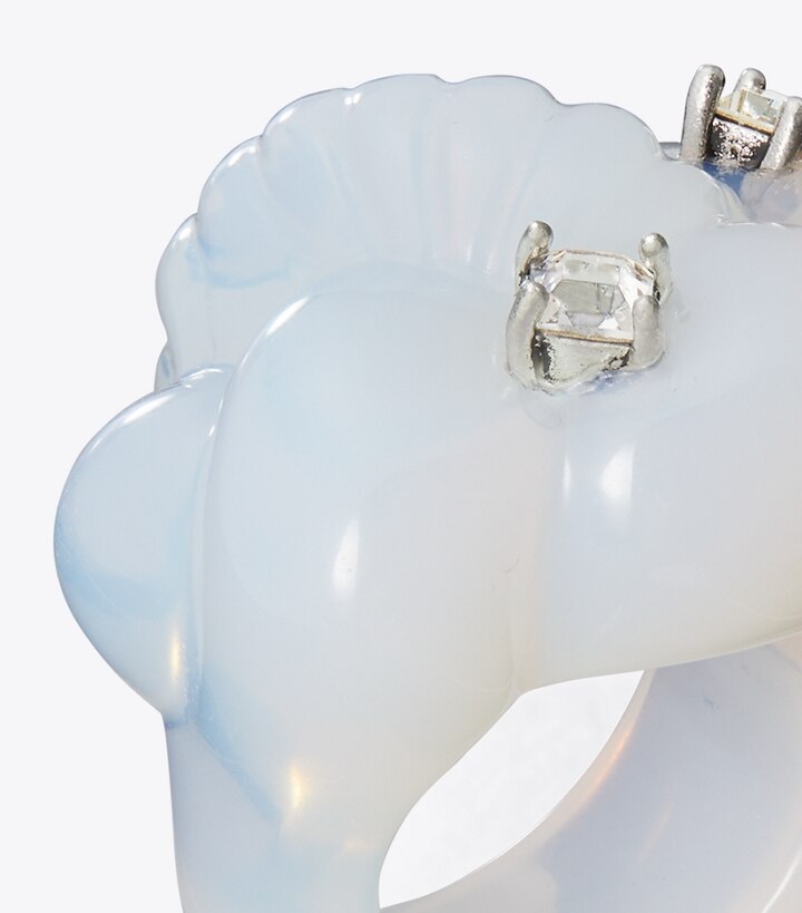 GUESS Silvertone & Clear Crystal Wide Band Statement Ring