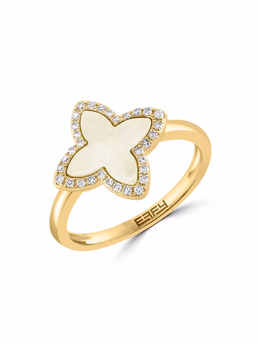 Effy 14K Yellow Gold, 0.11 CT. T.W. Diamond & Mother-Of-Pearl Cross Ring