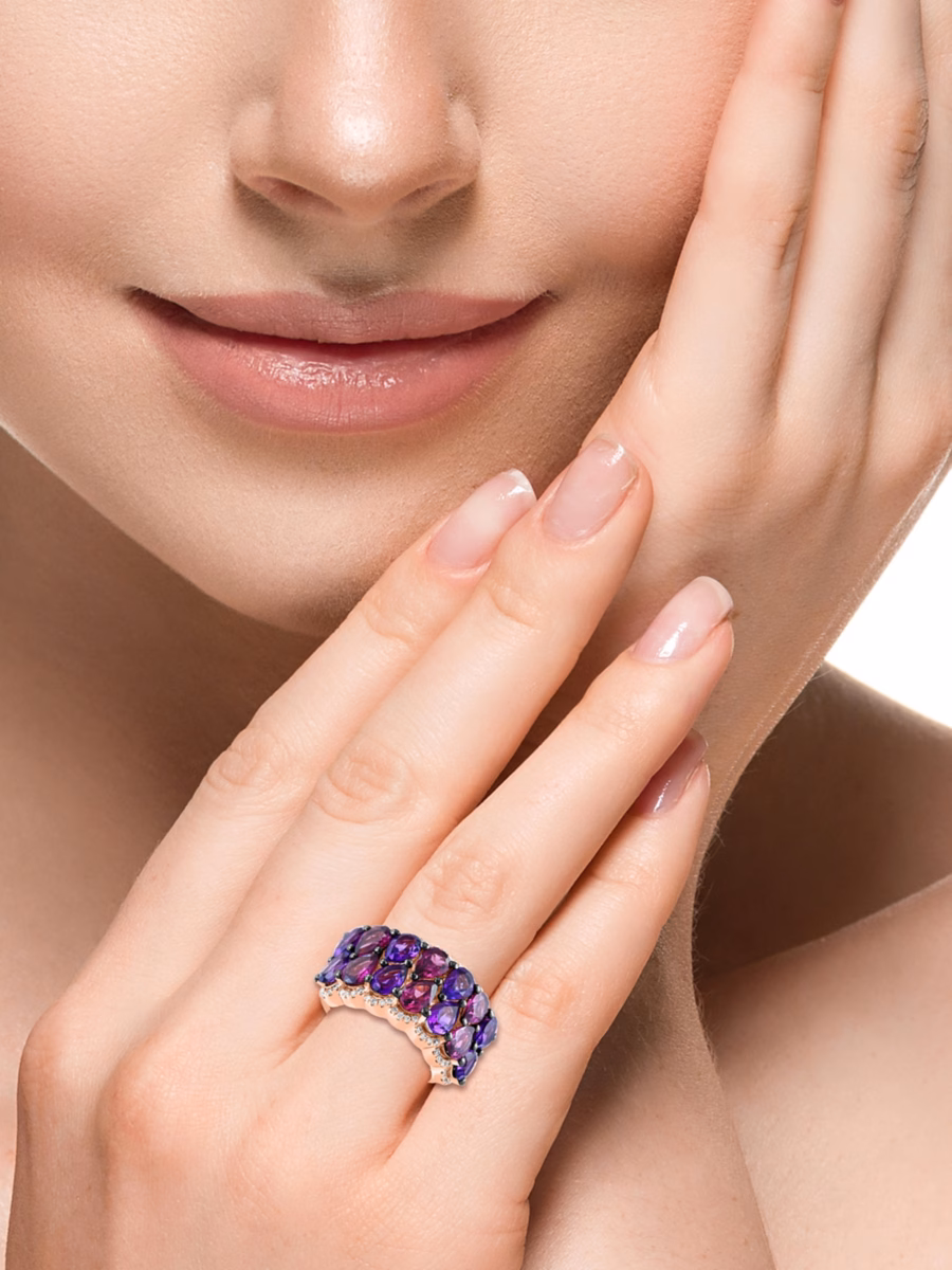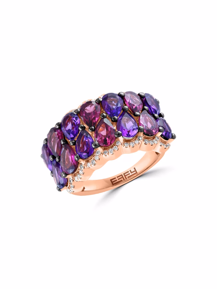 Effy 14K Rose Gold, Rhodolite, Amethyst & 0.22 CT. T.W. Diamond Ring