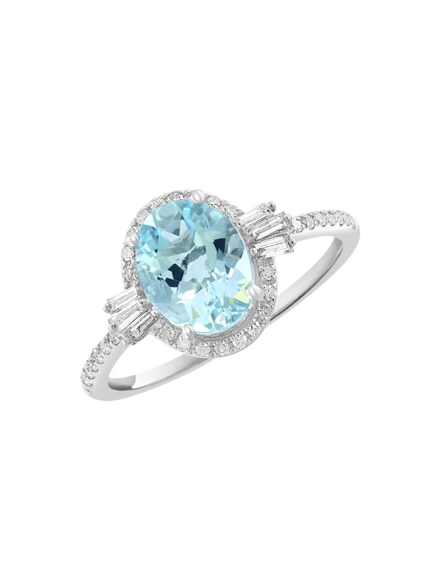Effy 14K White Gold, Aquamarine & 0.23 CT. T.W. Diamond Ring