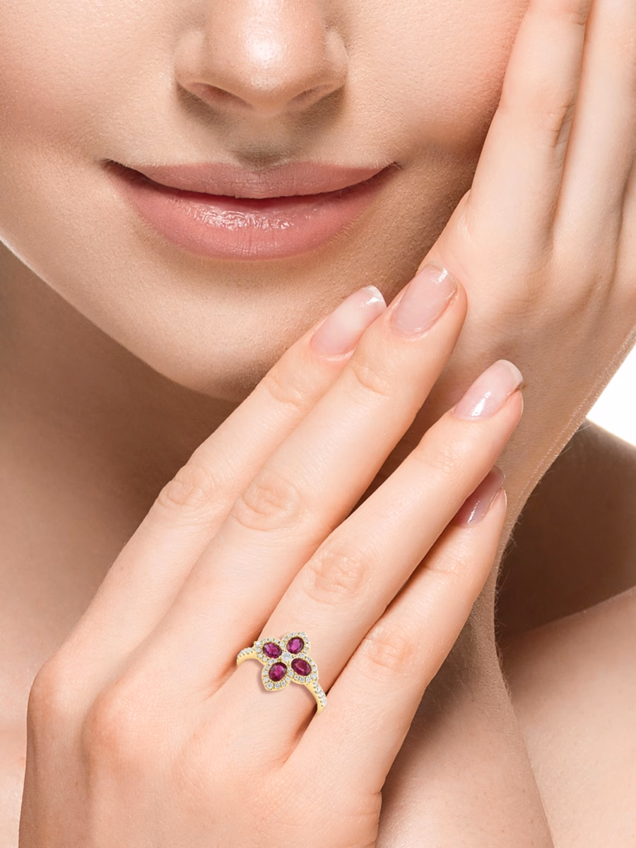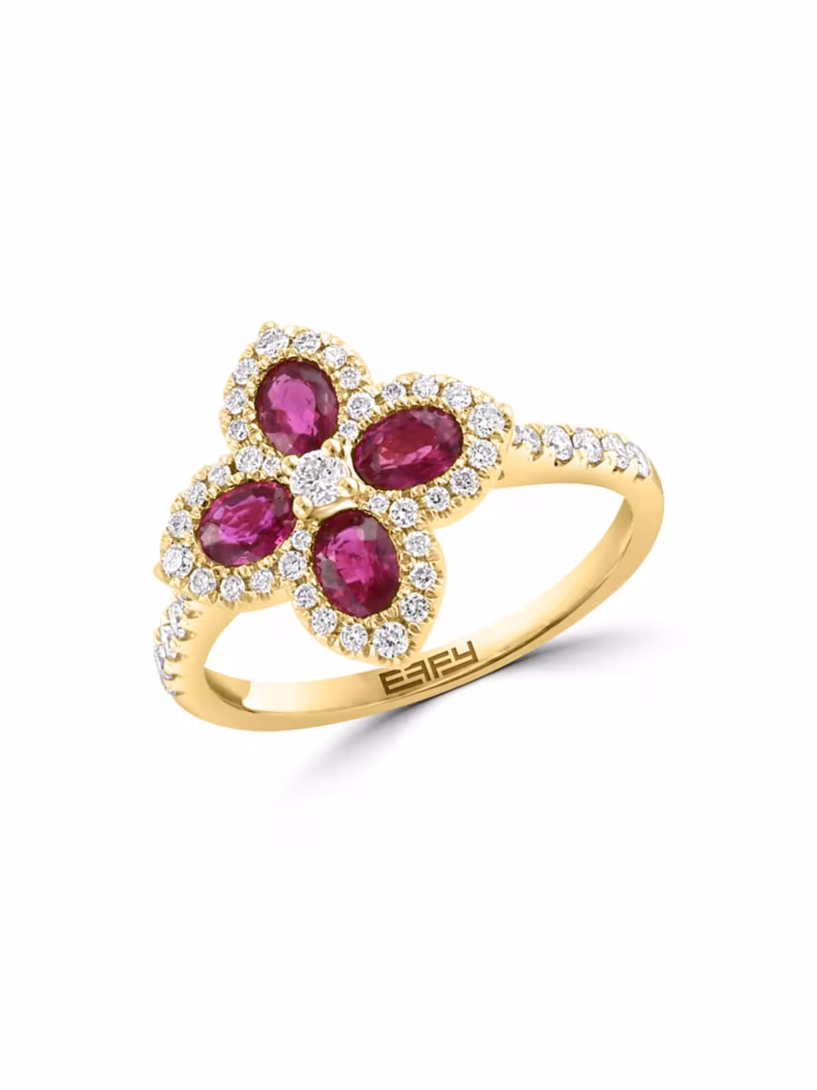 Effy 14K Yellow Gold, 0.43 CT. T.W. Diamond & Natural Ruby Flower Ring