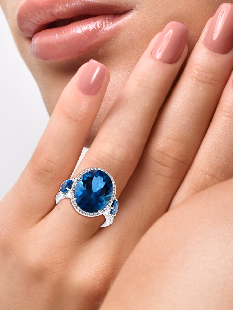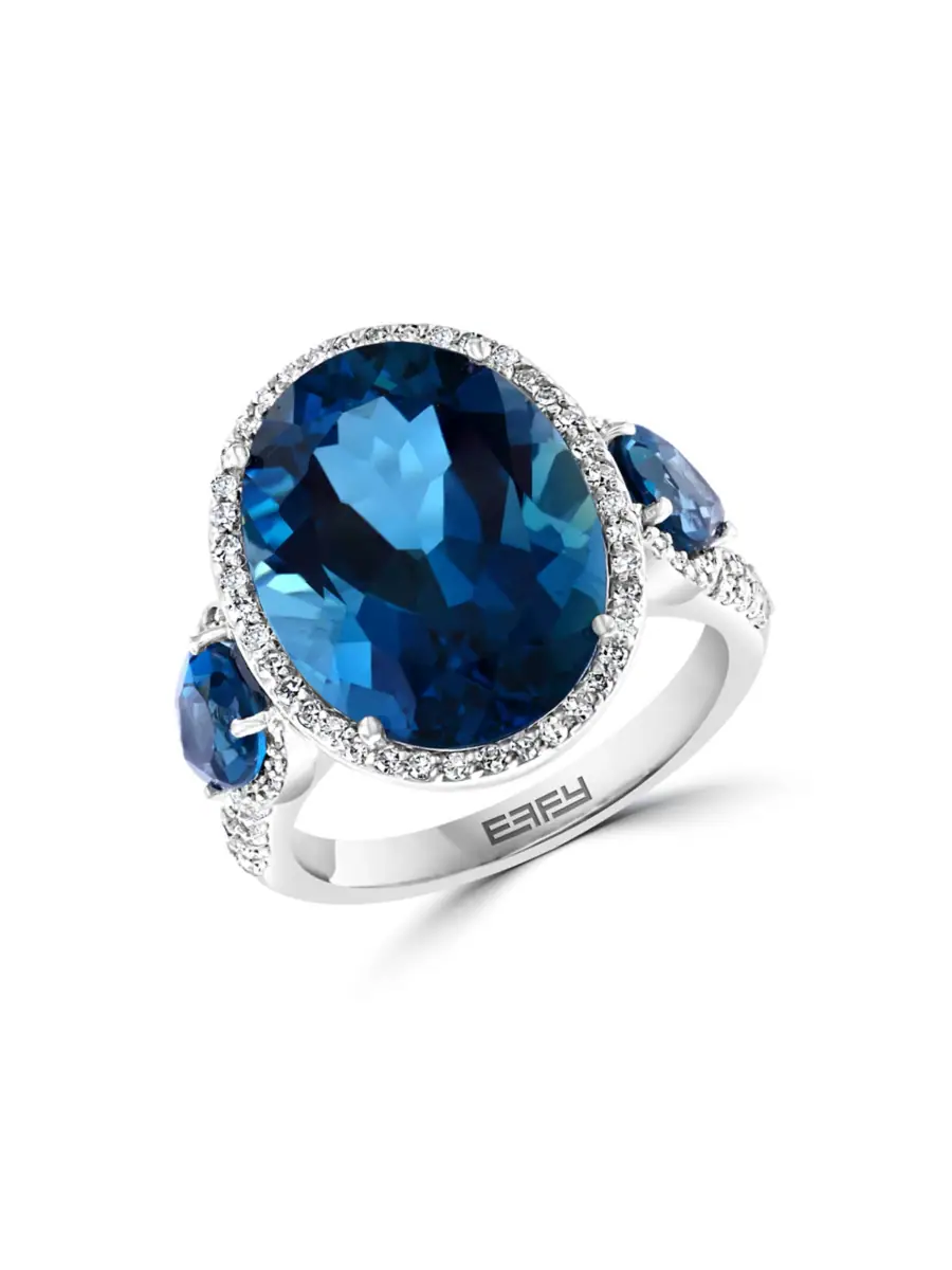 Effy 14K White Gold, London Blue Topaz & 0.26 CT. T.W. Diamond Ring