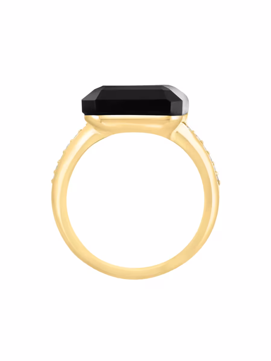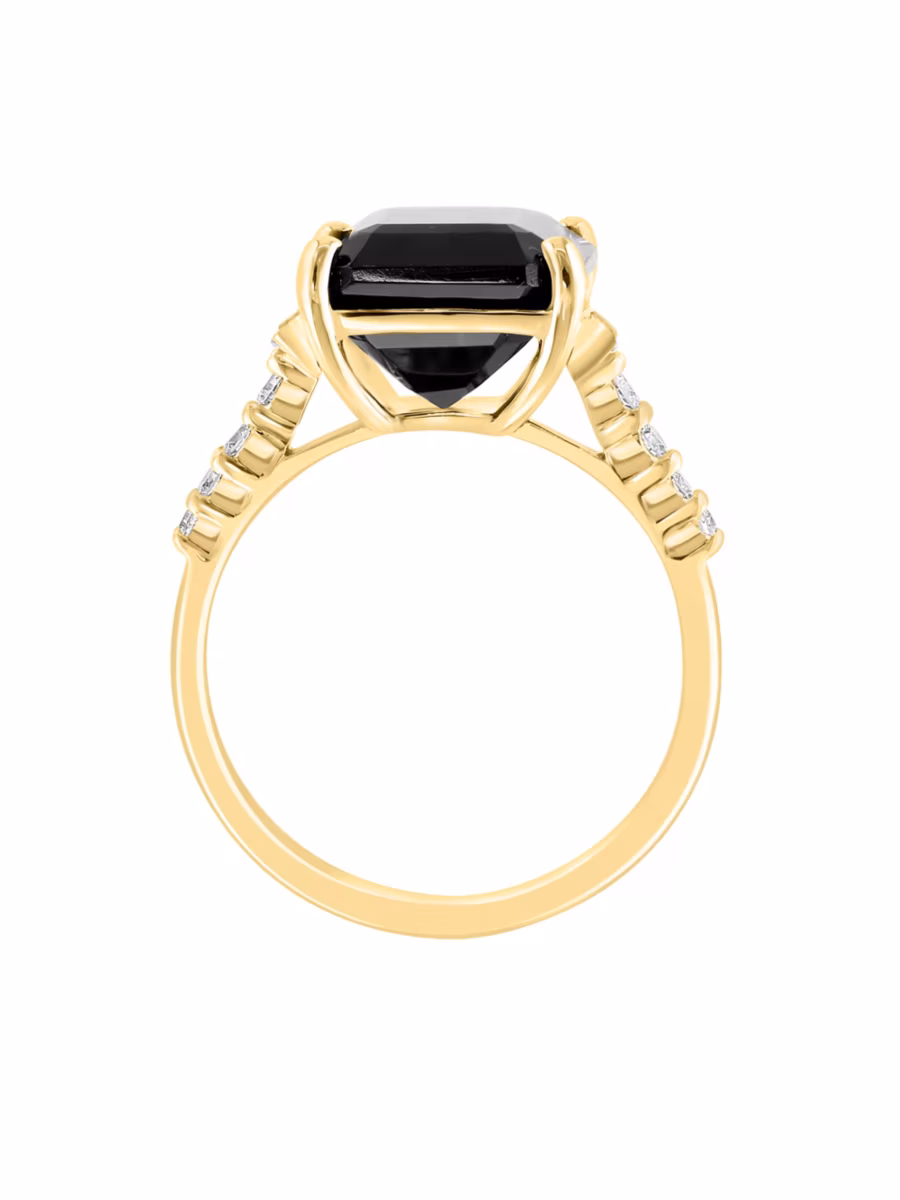 Effy 14K Yellow Gold, 0.2 CT. T.W. Diamond & Onyx Prong Array Ring