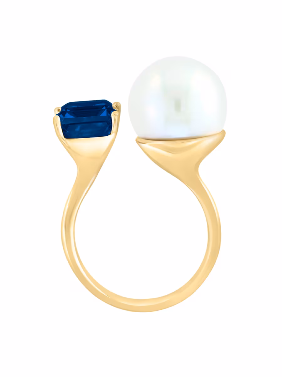 Effy 14K Yellow Gold, London Blue Topaz & 13MM Freshwater Pearl Ring
