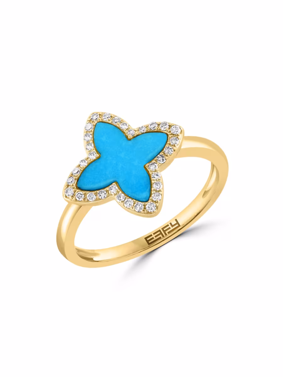 Effy 14K Yellow Gold, 0.11 CT. T.W. Diamond & Turquoise Cross Ring