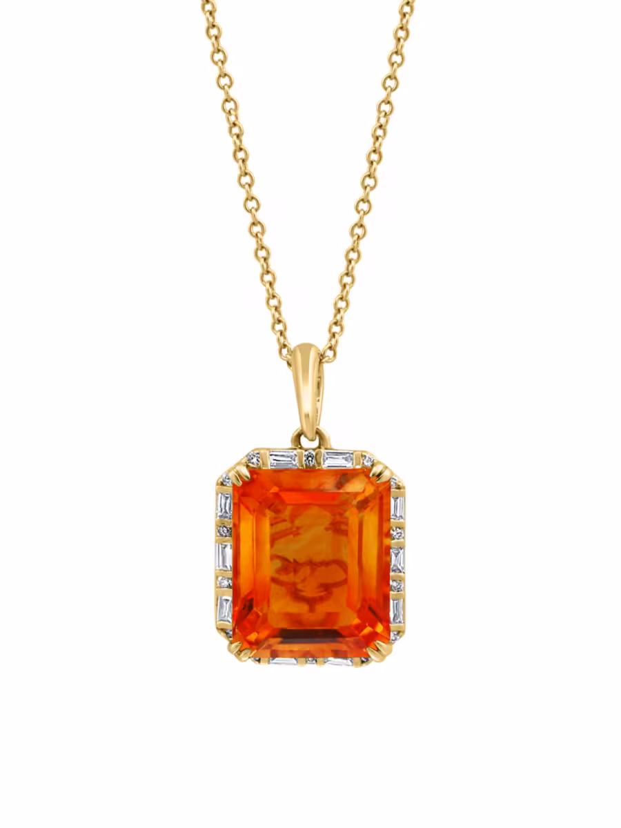Effy 14K Yellow Gold, 0.14 CT. T.W. Diamond & Citrine Pendant Necklace