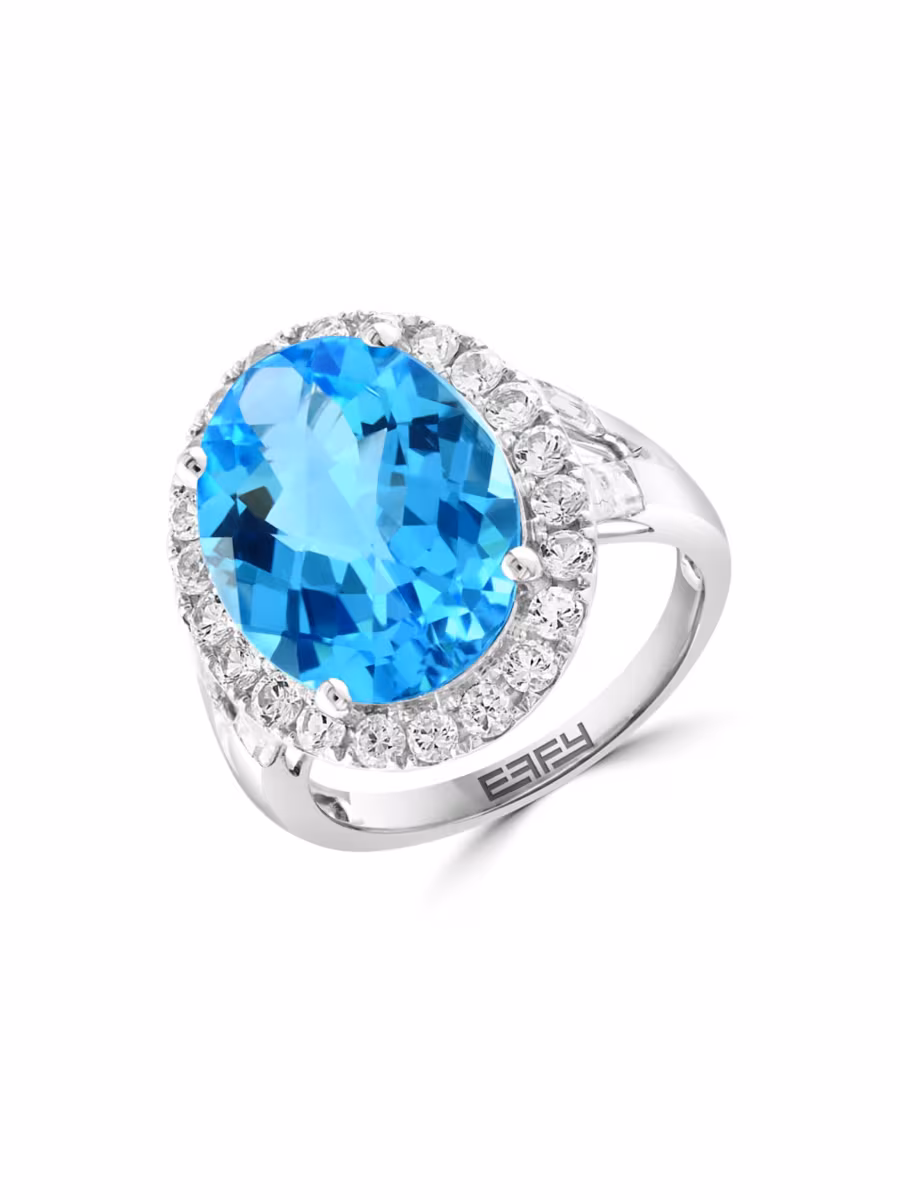 Effy 14K White Gold, Blue Topaz & White Topaz Ring