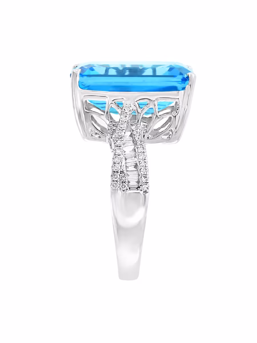 Effy 14K White Gold, Blue Topaz & 0.35 CT. T.W. Diamond Ring