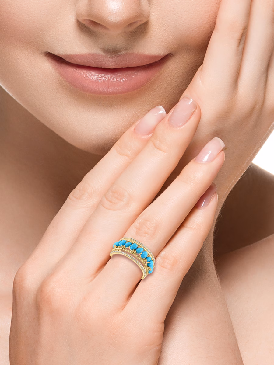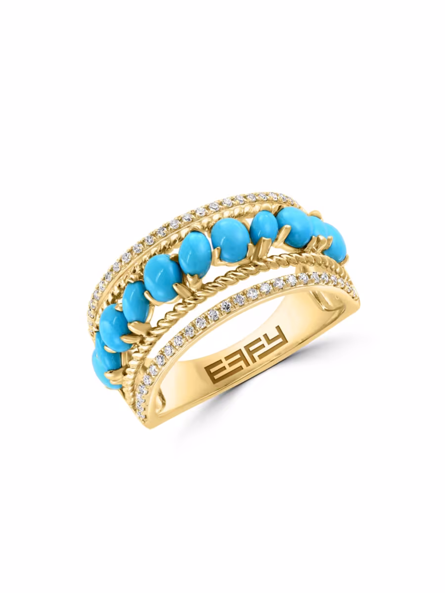 Effy 14K Yellow Gold, 0.19 CT. T.W. Diamond & Turquoise Mixed-Band Ring