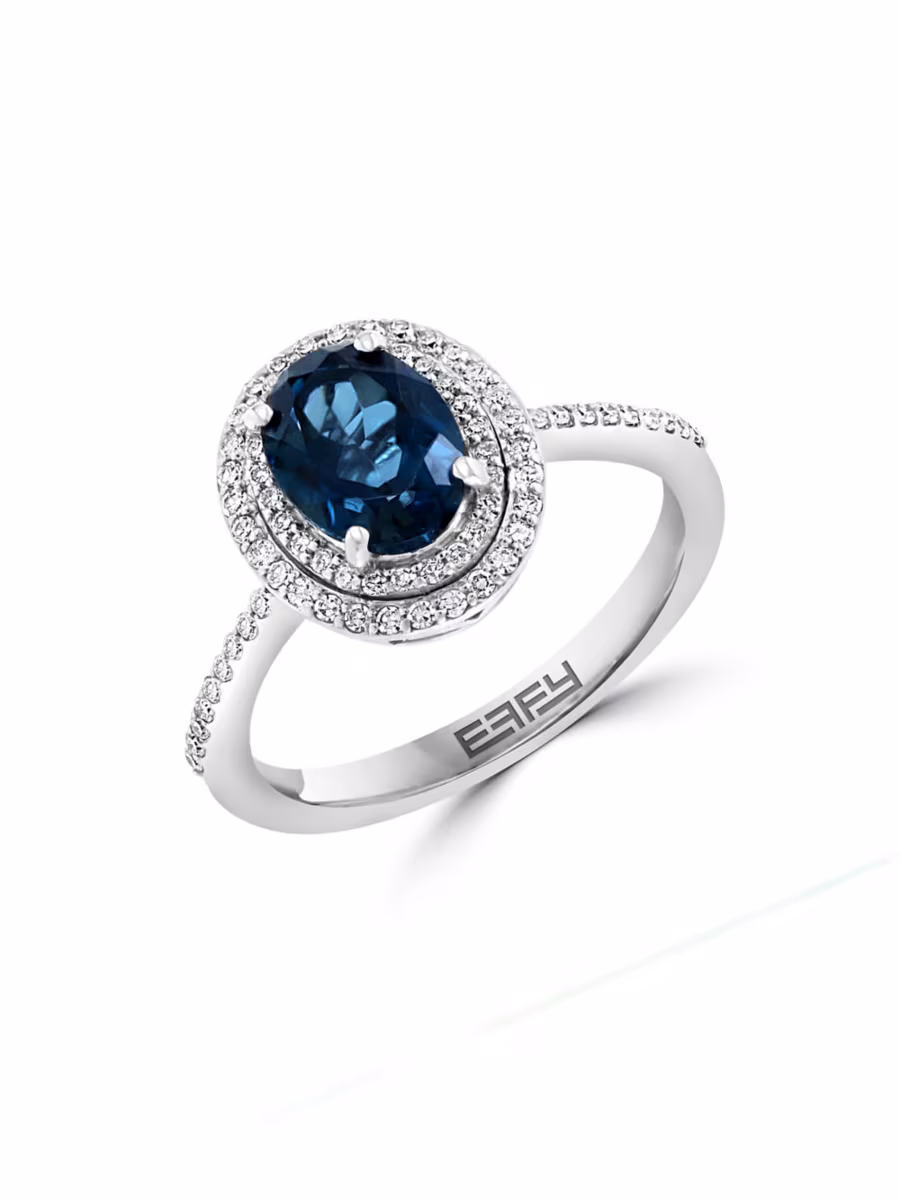 Effy 14K White Gold, Blue Topaz & 0.45 CT. T.W. Diamond Ring