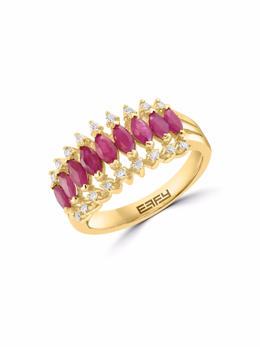 Effy 14K Yellow Gold, 0.18 CT. T.W. Diamond & Natural Ruby Ring