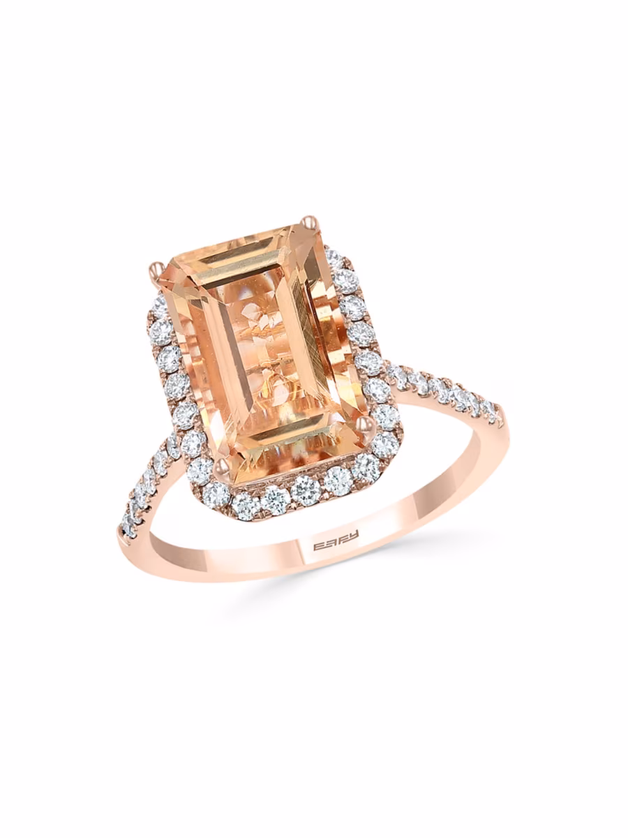 Effy 14K Rose Gold, Morganite & 0.49 CT. T.W. Diamond Ring