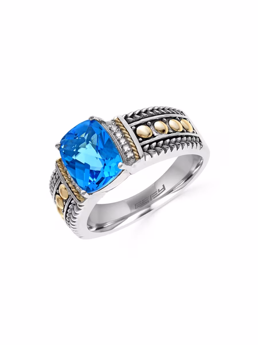Effy 18K Yellow Gold, Sterling Silver 0.04 CT. T.W. Diamond & Blue Topaz Ring