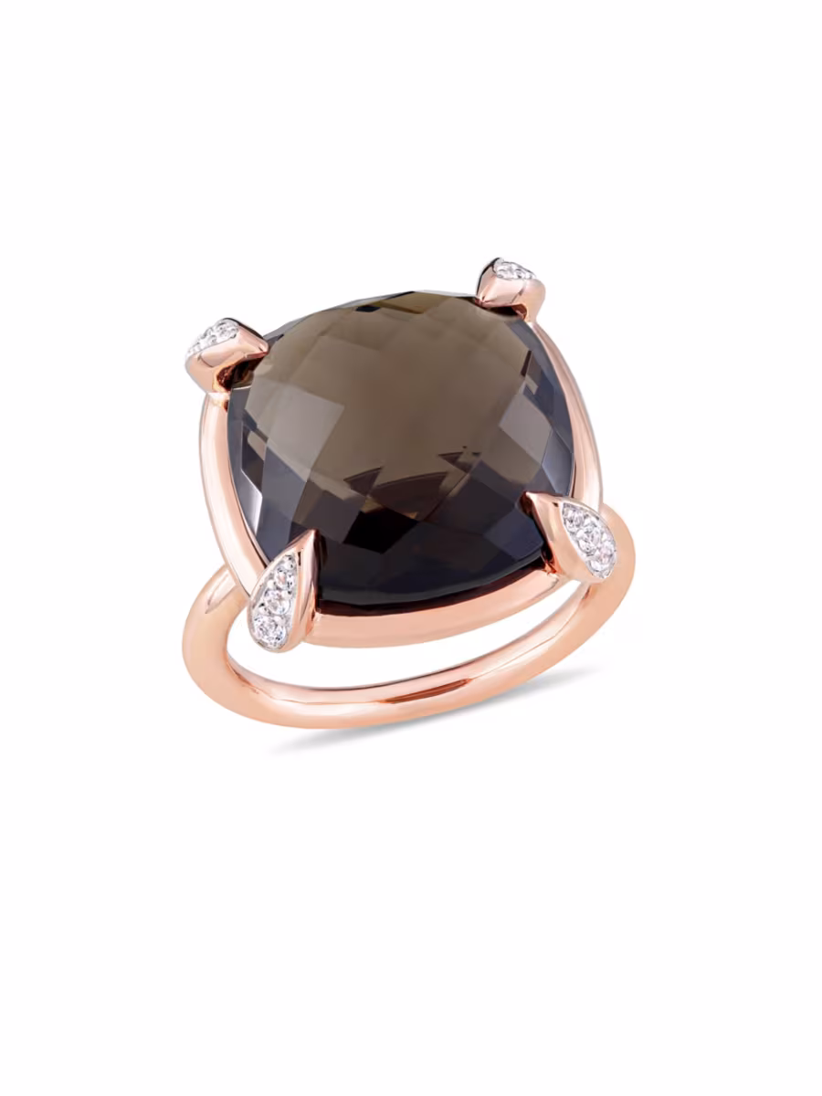 Concerto Smokey Quartz, White Sapphire and 14K Rose Gold Cocktail Ring