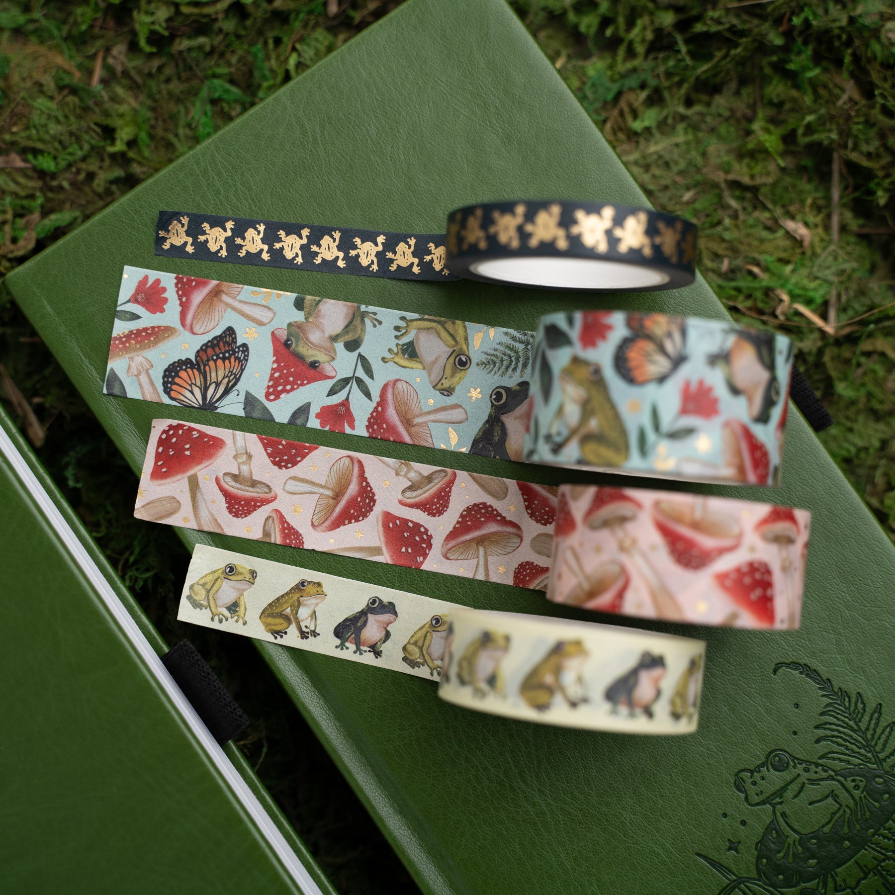 Let your creativity leap to life with our Mushroom Monarch Washi Tape. This set of 4 Washi Tapes is inspiredby playful frogs, captivating butterflies and vibrant mushrooms.